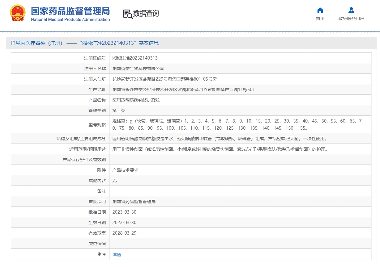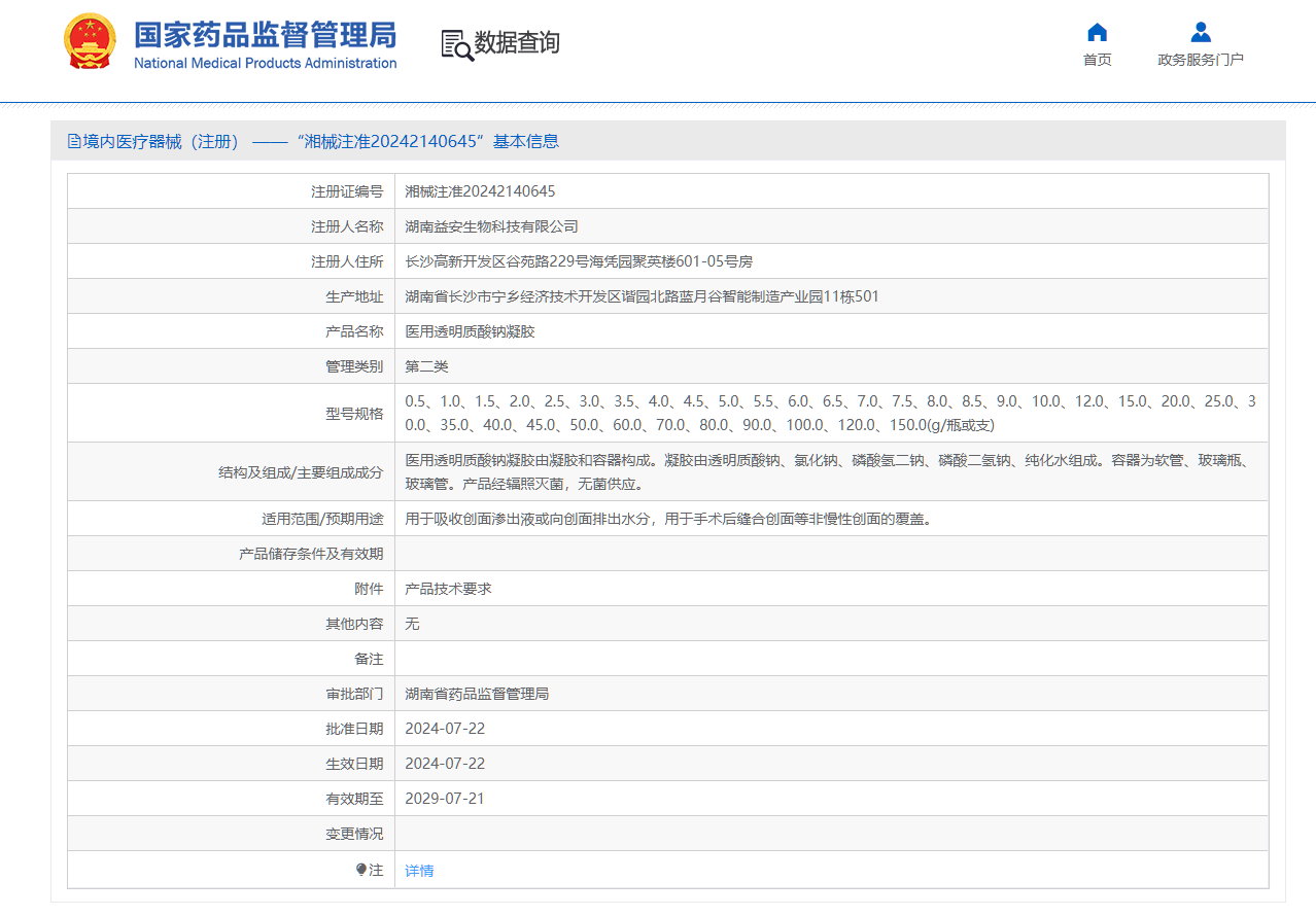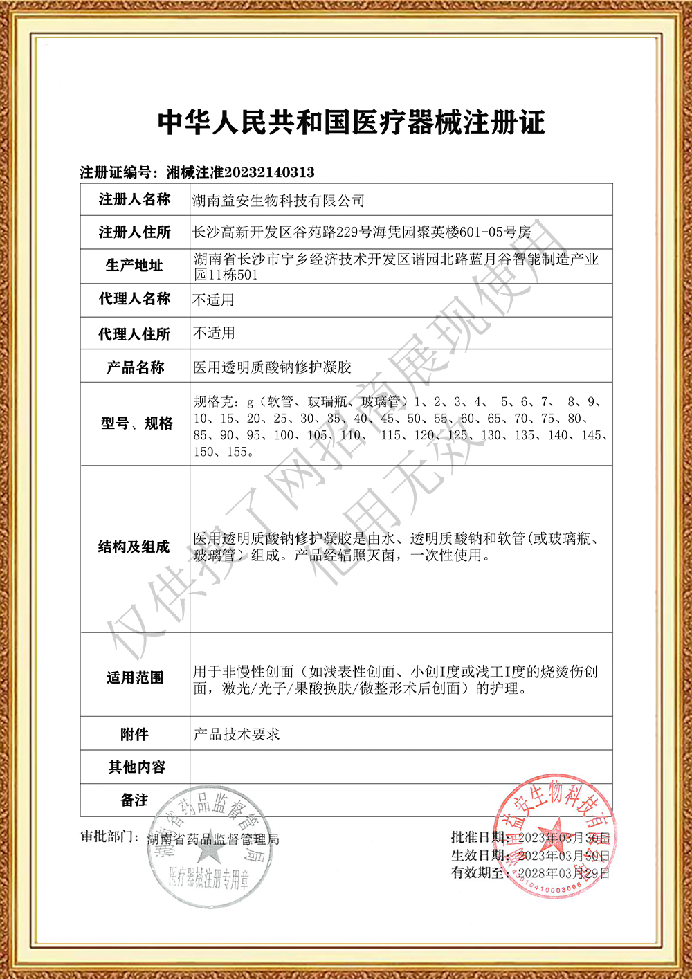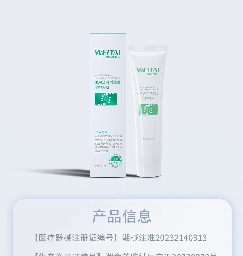 醫(yī)用透明質(zhì)酸鈉修護凝膠是由水、透明質(zhì)酸鈉和軟管(或玻璃瓶、玻璃管)組成。產(chǎn)品經(jīng)輻照滅菌,一次性使用。