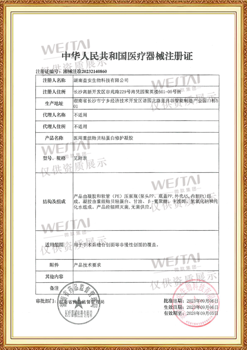 1. 重組貽貝粘蛋白:是主要活性成分,具有很強的黏附性和生物相容性。