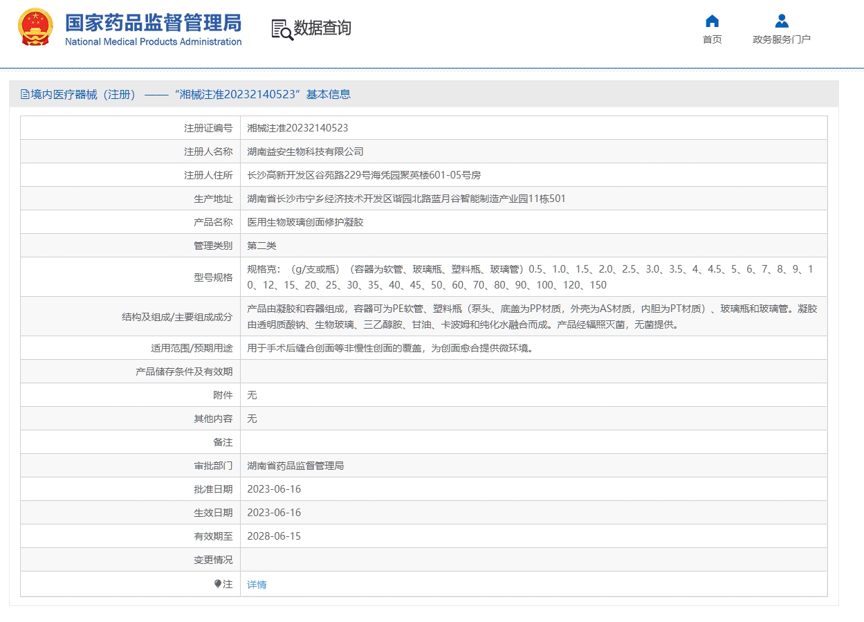 產(chǎn)品由凝膠和容器組成,容器可為PE軟管、塑料瓶(泵頭、底蓋為PP材質(zhì),外殼為AS材質(zhì),內(nèi)膽為PT材質(zhì))、玻璃瓶和玻璃管。凝膠由透明質(zhì)酸鈉、生物玻璃、三乙醇胺、甘油、卡波姆和純化水融合而成。產(chǎn)品經(jīng)輻照滅菌,無菌提供。